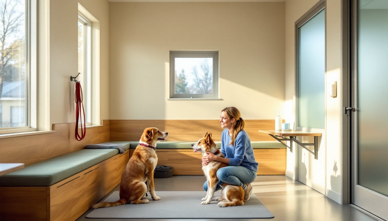 Ventilation isn’t glamorous, but it’s critical. Follow HVAC guidelines requiring 10-15 air changes per hour in animal housing areas to control odors and airborne pathogens. Place supply vents to create gentle air movement without direct drafts on kennels.
