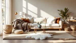 - Apply the 60-30-10 color rule to proportion your room: 60% dominant color (walls), 30% secondary (upholstery), and 10% accent (accessories).